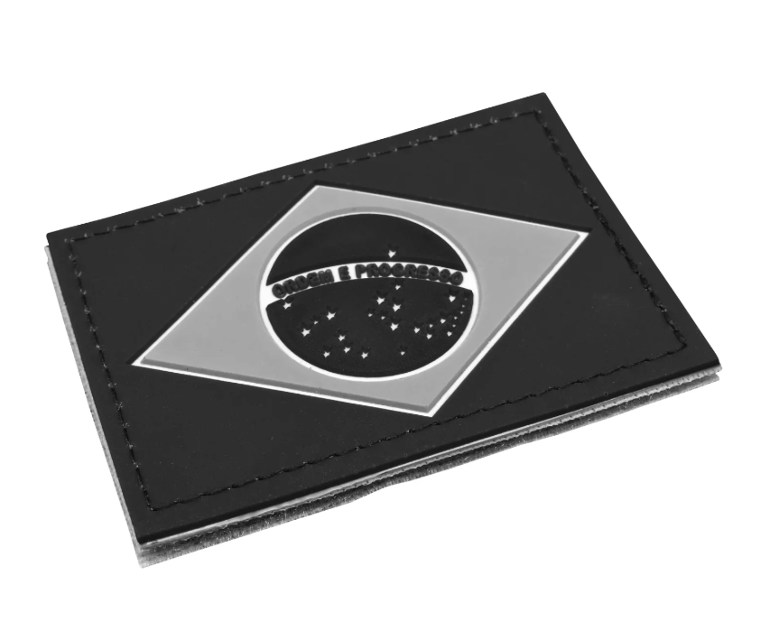 Utilizado como patch, o emborrachado da bandeira do Brasil pode ter sua utilização em fardas, mochilas, bonés e outros equipamentos com área de fecho de contato.